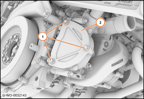 | | | Care Point: | Risk of damage. Make sure you do not damage the coolant pump housing.