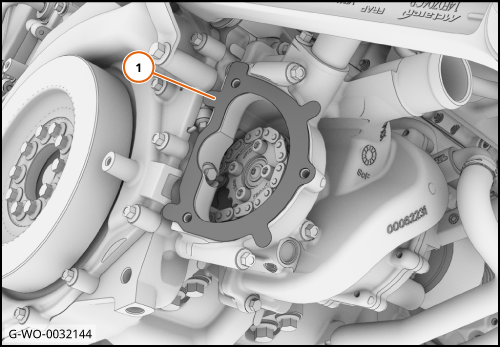 | | | 6. | Clean the mating surface of the water pump (1) with Loctite 7063.