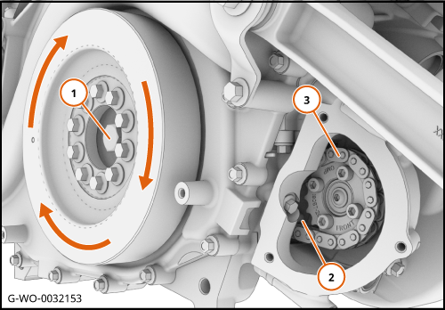| | | Care Point: | Risk of damage. Only rotate the crankshaft in a clockwise direction.