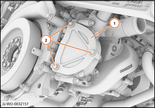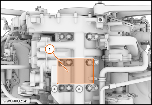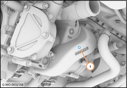 | 10. | Apply a blue paint pen mark to the water pump in the location shown (1).