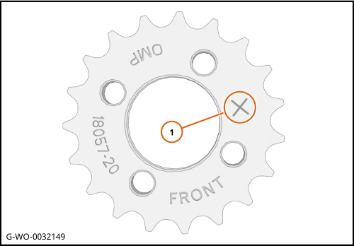 | | | 1. | Locate the X mark (1) on the new sprocket.